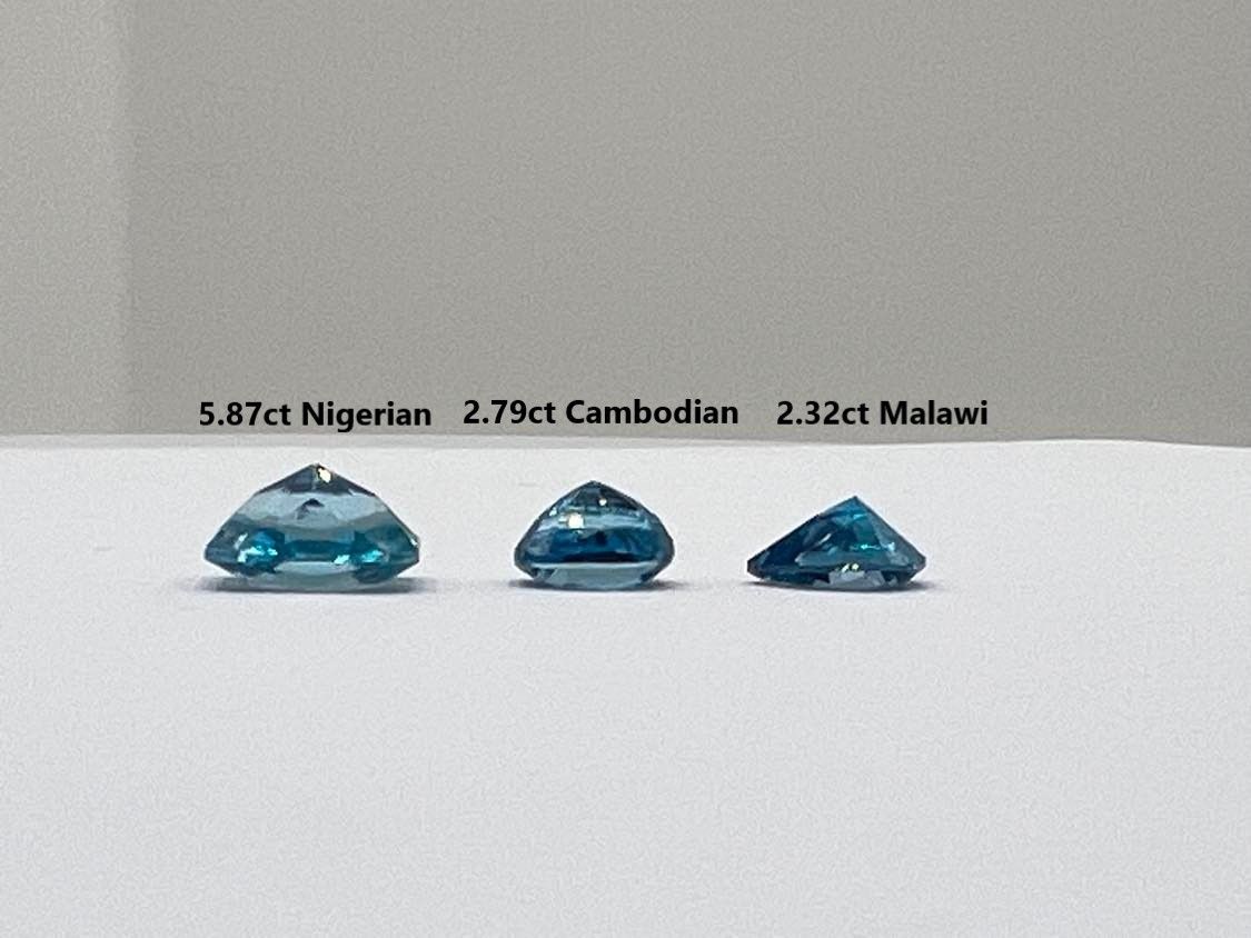 5. Most blue zircon cut from other locations usually requires a very deep cut to maximize their color. A Malawi Blue Zircon has a precision cut and maintains a deeper blue saturation. Example in photo’s below. Zircon is known as a semi-precious gemstone with the Mohn’s hardness of 7 to 7.5.